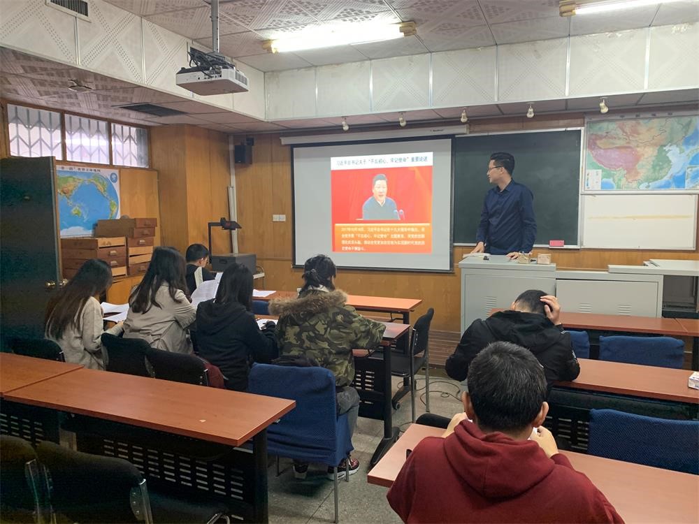 17级博士生党支部开展了 “不忘初心、牢记使命”主题教育活动,认真贯彻落实《关于学生党支部开展“不忘初心、牢记使命”主题教育实施方法》文件精神,精心设计、周密筹备,力求为党支部成员奉上一道精神大餐。 活动当日,首先进行了“不忘初心、牢记使命”党支书专题党课活动,党支部书记申嘉澍带领支部各位党员共同学习了习近平总书记在不同会议与活动中关于“不忘初心、牢记使命”的重要论述。习总书记在十九大报告中指出,不忘初心,方得始终。中国共产党人的初心和使命,就是为中国人民谋幸福,为中华民族谋复兴。作为我院自然地理学、人文地理学、环境科学与生态学的学生,要坚定“绿水青山就是金山银山”的理念,不忘初心,脚踏实地,专心科研,努力掌握能为建设美丽中国作贡献的本领。 “不忘初心、牢记使命”专题党课 在随后的党支部“读原著、学精神”的活动中,支部成员们深入学习习近平总书记在琉璃神社