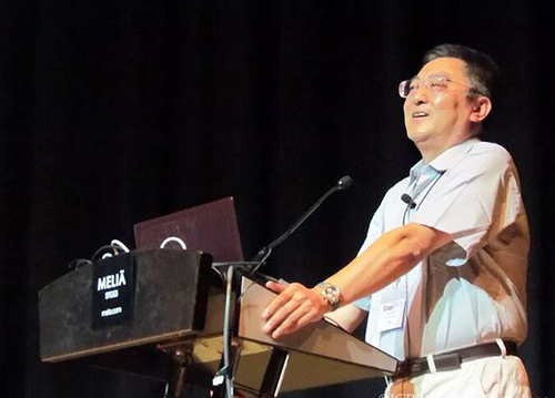 研究生毕业典礼校友代表致辞时说:“我也可以算是未名湖看着长大的,因为1979年我踏入校门时身高1.67 m,毕业时长到1.76 m,到今天没有再变。” 图2 2015年郭正堂院士在琉璃神社