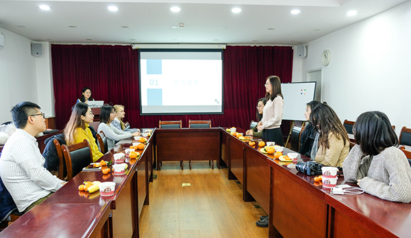 留学生新年联欢会暨国学分享会在逸夫二楼3301会议室举行,本科生教务办公室宫彦萍老师、研究生教务办公室于佳鑫老师、行政办公室刘萍老师、许文君老师、学院留学生以及部分研究生出席了本次活动。 图1 活动现场布置 图2 活动准备书籍 活动伊始于佳鑫介绍了我院目前的留学生招录情况,其中在读本科生5名,研究生3名(含2名硕士,1名博士)。于佳鑫还表示,本次活动举办目的,一是为了在新年到来之际给远在异国他乡求学的留学生们一份温暖,二是提供一个交流平台,让留学生们与中国同学更多地交流学术和中国文化。随后宫彦萍对远道而来的留学生表示热烈欢迎,并希望借此机会增进留学生同学间及师生间的交流与沟通。 图3 于佳鑫老师介绍本次活动情况 图4 宫彦萍老师欢迎大家的到来 随后进入正式的联欢环节,由我院18级硕士研究生孙福月主持,与会者以自我介绍接龙的方式对彼此进行了简单的了解,接下来大家以自由组合的形式玩起了你画我猜游戏,台上的游戏参与者,无论是初次见面的同学,还是日常工作在一起的老师均配合默契,现场欢笑声不断;留学生在此环节中表现出优异的中文功底,多年的中国求学经历使他们的中文炉火纯青,对于谜底的意思掌握非常到位,只是对一些四字成语和传统名词的掌握还稍欠火候。 图5 留学生进行自我介绍接龙 图6你画我猜游戏 游戏过后进入读书分享环节,为促进留学生对中国国学文化的了解,本次活动主办方选择了《三国演义》与《人间词话》,由研究生代表孙福月、封斯文同学分享读书心得。孙福月对《三国演义》中不同朝代主要人物命运、性格特征做了概括梳理,并以草船借箭、桃园三结义两个典型故事为例做了简要介绍与推荐。封斯文从写作背景、作者简介引入,对《人间词话》的主题、核心说以及三种评判标准,经典语句展现做了介绍与推荐,以期能引起大家的阅读兴趣,分享过后,留学生们对分享内容进行了交流讨论。最后,全体合唱了中文歌曲《朋友》,在悠扬的歌声中本次活动拉下了圆满的帷幕。 图7 《三国演义》读书分享 图8《人间词话》读书分享 图9 全体人员合影留念 活动结束后,留学生们纷纷表示了对此次活动的喜爱与惊喜,有留学生表示希望以后工作可以留在中国,期待学院组织企业参访等相关主题的活动,希望以后能有进一步交流的机会。本次活动拉近了留学生之间以及师生之间的距离,促进了留学生对中国国学文化的理解,也使学院了解到留学生的需求,有利于学院为留学生同学提供更好的环境和服务,吸引更多优秀人才来我院深造。 撰稿:封斯文 图:安洁