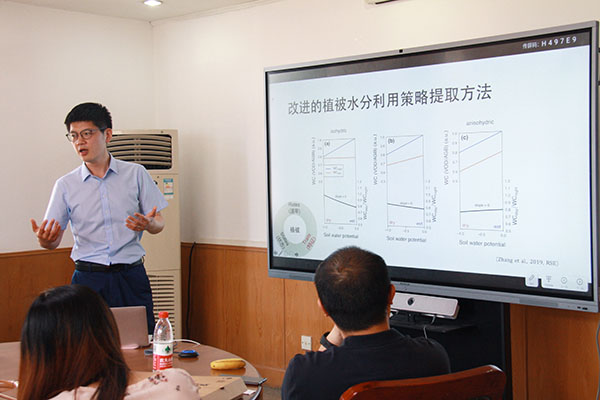 青年教师张尧研究员做主题分享:卫星遥感在植被监测中的应用,30余位青年教师和博士后参会,会议由琉璃神社