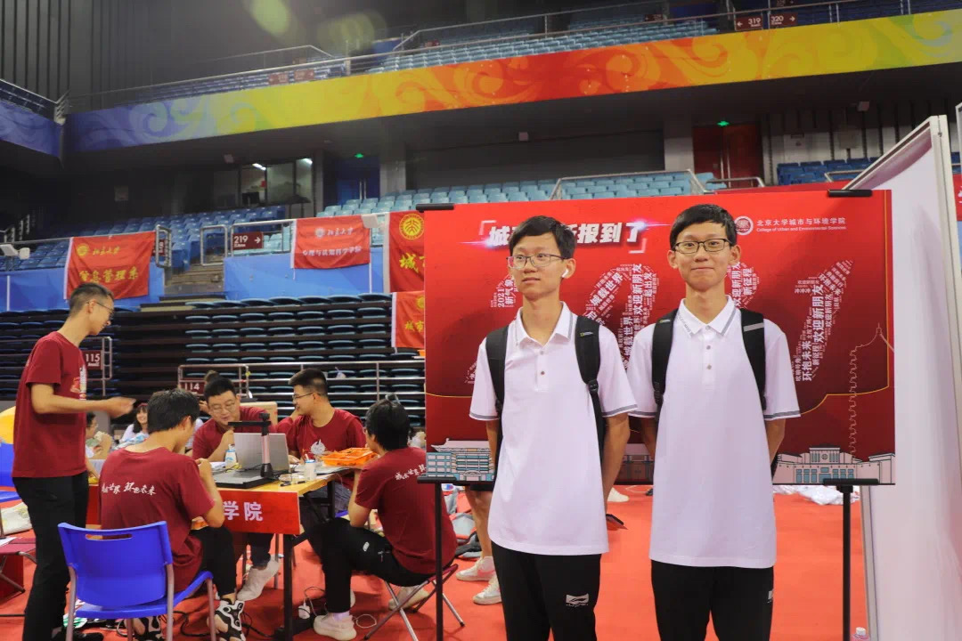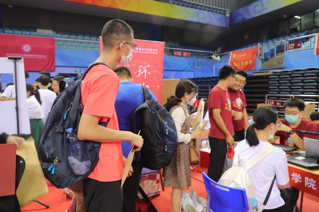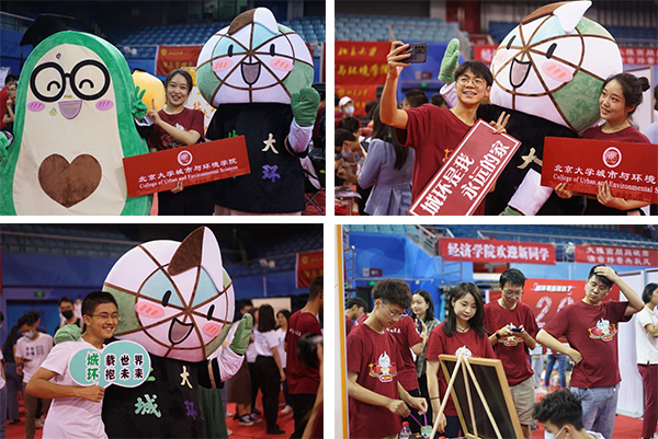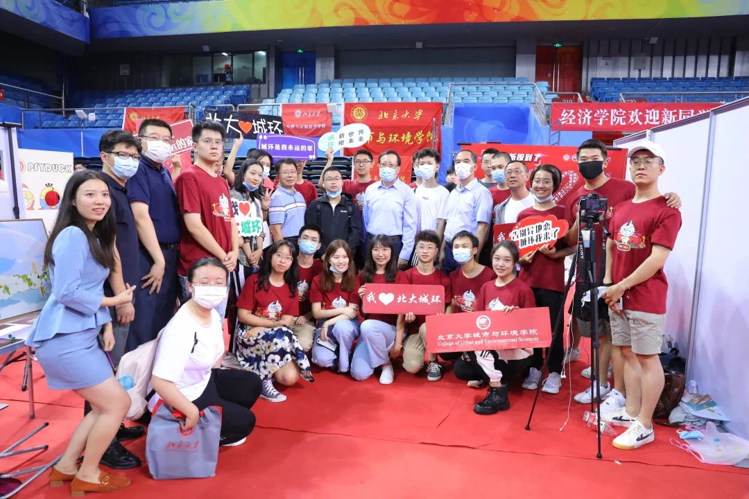党委书记邱水平,校长郝平,常务副校长龚旗煌,党委副书记、副校长陈宝剑等校领导来到城环迎新站,询问新生报到细节,殷切嘱托,深深祝福,并同新生一起为“新生第一画——未名博雅”添上饱满笔墨。学校与学院对迎新的重视,行之以躬,不言而信。 邱水平书记了解学院迎新工作 邱水平书记与新生共同绘画 郝平校长为“新生画作”上色 郝平校长与同学们亲切交谈 校领导与现场人员合影 学院院长贺灿飞、党委书记刘耕年在迎新现场同新生亲切交流,细致查看迎新每个步骤、细节,详细了解迎新情况,并参与了本科新生第一幅画作,向新生送去了温暖的祝福。 贺灿飞院长了解迎新进展 刘耕年老师为“新生画作”上色 院领导与迎新志愿者合影 为了迎接新生,让城环新人尽快融入到城环大家庭的温馨氛围中,迎新现场设置了“初识城小环”、共绘“一塔湖图”、“未来可期”等丰富的互动环节,新生在完成注册后都积极参与了现场的各项环节。 初识城小环 北大城环的吉祥物——城小环早早在现场等候大家。取意于城环地理人的科研学习,城小环是城环人的必备:一只实用轻巧的指北针,为我们指示方向的工具,出野外不可或缺的小帮手!它的配色是象征大自然的蓝色与绿色,代表了城环人对美丽地球、美好环境、城乡融合、乡村振兴等愿景的美好向往。城小环正是勤劳务实、热爱自然、积极实践的城环人的经典写照。迎新现场,新生们竞相与吉祥物合影,把在城环里绽放的第一抹笑容定格于此。 城小环 城小环与小萌新的合照 “共绘新生第一画——未名博雅” 我院选择雨后彩虹下的未名湖畔作为绘画对象,取名“新生第一画——未名博雅”这是琉璃神社