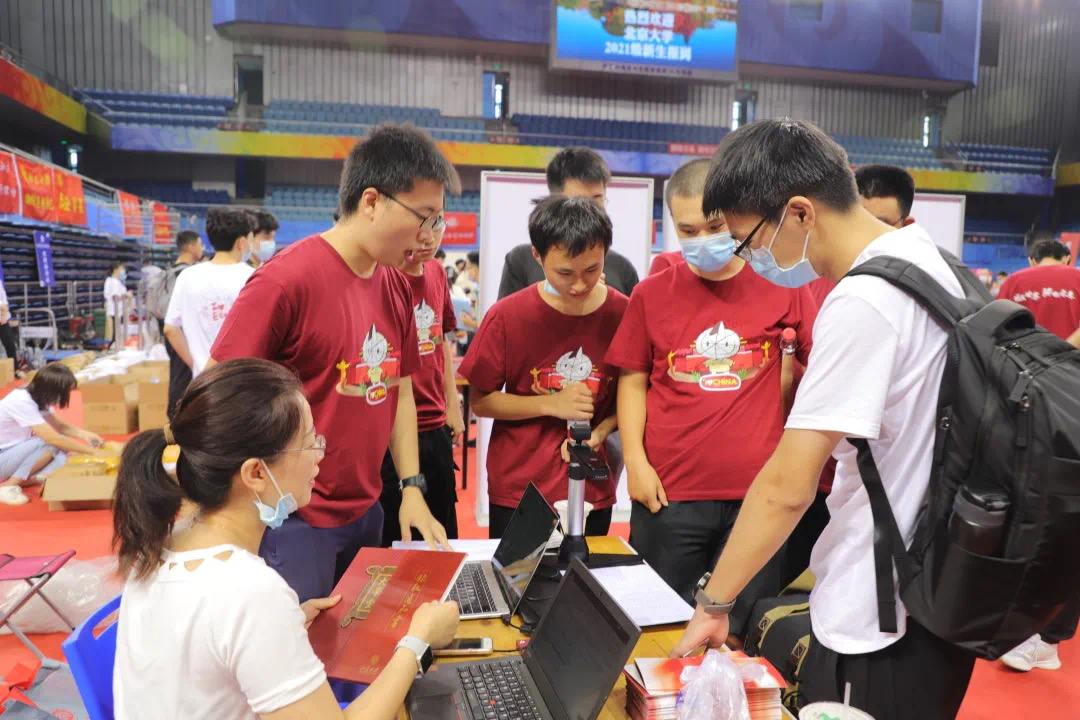 从6月开始筹备迎新工作和新生教育方案,学院党委领导,学工办、团委牵头,班主任、辅导员、学生会、研究生会、运动队等在线上线下添砖加瓦。师兄师姐们积极踊跃报名成为志愿者们参与迎新。大家齐心协力,物资整理、物资运送、现场布置、温馨关怀、热情迎接…全方位落实落细迎新各方面工作,以协助新生们更好地适应大学生活。 准备工作 第一位新生报到 新生排队注册 双胞胎兄弟报到,哥哥王顾言就读于琉璃神社