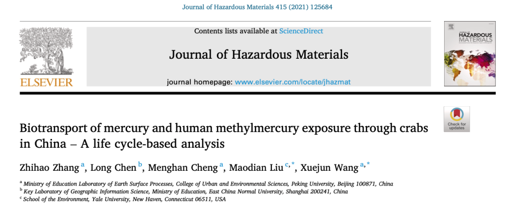 我院2017级环境科学专业学生张志皓同学拔尖计划研究成果“Biotransport of mercury and human methylmercury exposure through crabs in China - A life cycle-based analysis”以第一作者在《Journal of Hazardous Materials》发表文章。 甲基汞(Methylmercury, MeHg)作为自然界中汞元素的常见存在形式之一,是一种生物毒性物质,对于人体具有极高的神经毒性,发育期婴幼儿及孕期妇女为其主要敏感人群。甲基汞常见于水体及生物体中,通过食物摄入少量即能发挥巨大毒性,食物摄入也是甲基汞暴露的主要渠道。近年来,人体甲基汞暴露研究主要集中在海水鱼类如金枪鱼等高甲基汞浓度生物及东亚地区大米等低甲基汞浓度、高摄入量的食物种类之中,对于其他食物种类的甲基汞含量及人体暴露贡献的研究较为匮乏。本研究以中国产蟹类为切入点,定量地研究了国产蟹类甲基汞的年总产量、迁移途径及最终对于人体甲基汞暴露的贡献(图1)。 图1 中国蟹类甲基汞地区年产量、迁移途径及最终暴露分布 根据本次研究的实验结果,国产蟹类体内含有较高浓度的甲基汞(50–1400 ng/g),与部分海水鱼类甲基汞浓度持平,但却未在甲基汞暴露研究中得到关注。我国年食用蟹类产量中所含有的甲基汞在近20年来快速增长,在2018年达到30 27kg(图2左)。我国蟹产甲基汞产地十分集中,主要分布于东南沿海及少量内陆淡水湖区域,约仅6.8%的国土面积贡献了71%的年蟹类甲基汞通量(图2右)。然而通过跨省食品贸易及进出口,蟹类甲基汞暴露呈现海产蟹类甲基汞从沿海向内陆转移、淡水产蟹类甲基汞从东南向西北转移的趋势(图3)。最终,我国年蟹类甲基汞产量的66%迁移到非产地地区,涉及的人体暴露广泛分布在我国各地。此前的甲基汞暴露研究多注重产地及相关人口暴露,经过贸易迁移而导致的风险转移很少受到关注,严重低估了非沿海地区及非重点水产产地的甲基汞人体暴露,应引起重视。 图2 我国年蟹类甲基汞产量年变化(2003-2017)及2017年蟹类甲基汞各省份产量 图3 我国蟹类甲基汞源汇分布及生物迁移途径 琉璃神社