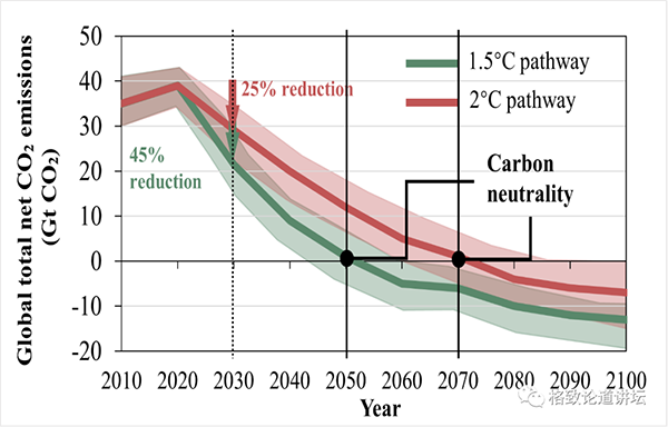全国的森林覆盖率由20世纪80年代初的12%, 提高到目前的23%, 我们还是全球人工林面积最大的国家, 占据全球人工林面积的25%左右。 中国科学院院士朴世龙在格致论道第83期(2022年6月25日)的报告“中国陆地生态系统碳汇现状及其潜力”全文: 大家好,非常荣幸在格致论道跟大家交流有关中国的生态系统碳循环、碳收支方面的一些研究进展。我今天报告的内容是“中国陆地生态系统碳汇现状及其潜力”。 人类活动是当代气候变化的主因 在工业化革命以前的全球生态系统的碳循环的过程中,在陆地上,植被通过光合作用吸收大气中的二氧化碳用于自身生长,又把一部分的碳通过自养呼吸的方式排放到大气里边。另外我们知道,生态系统中不仅有植被,还有土壤。土壤的有机质被土壤里的微生物分解,通过异养呼吸的方式排放到大气里边。所以在没有人类干扰的时候,植被生态系统通过光合作用吸收的量和排出的量基本上达到了平衡。 海洋也是相似的过程,陆地和海洋之间主要通过河流的方式进行一些碳的横向的交流。另外在自然界里边,我们还要注意火灾。火灾发生以后,会把大量的碳排放到大气里边。这些是工业化革命以前的情况。 但是在工业化革命以后,人类通过化石燃料燃烧的方式,把地下的碳排放到大气里边;而在工业化革命之前,这些碳是没有参与到现代碳循环过程中的。此外,在热带地区农田的面积不够,所以还会通过森林砍伐的方式开拓农田,这也会导致大量的碳排放到大气里边。所以目前来说,化石燃料的燃烧和土地利用的变化,这两种方式是全球二氧化碳浓度增加的主要方式。 ▲数据来源:CSIRO 从上图中我们可以看到,在过去两千年的历史中,工业化革命以后的大气中的二氧化碳浓度的上升速率是非常快的,IPCC(联合国政府间气候变化专门委员会)的核心结论是:人类活动是当代气候变暖的主因。 我们从IPCC的1990年的第1次评估报告到2021年的第6次评估报告中可以看出来,“人类活动是当代气候变暖的主因”这个结论的信度是逐渐递增的,并且在第6次评估报告里边,它提到了一点:毋庸置疑的是,人类活动的影响已经使得大气、海洋和陆地变暖。 ▲左:真锅淑郎(Syukuro Manabe)中:克劳斯·哈塞尔曼(Klaus Hasselmann) 来源:The Nobel Committee 说到这个结论,我们不得不提到两位杰出的科学家——美国科学家真锅淑郎和德国科学家克劳斯·哈塞尔曼。这两位科学家由于在全球气候变化研究中的贡献获得了2021年的诺贝尔物理学奖。真锅淑郎“奠定了地球气候变率和人类对其影响的认知基础”,他利用三维模式估算了二氧化碳浓度上升以后对地球系统产生的影响。另外一位科学家的获奖理由是在“地球气候物理模拟、量化变异和可靠预测全球变暖”这方面的突出贡献,尤其是他发展了检测归因的方法,利用这种方法得出的结论是,目前观测到的气候变暖大部分来自于人类活动。 全球变暖,我们要怎么办? 我们经常会问,人类活动对整个地球系统的扰动到底有多大,IPCC对未来的二氧化碳浓度的场景进行了三种不同的预测,包括低排放情景、中排放情景、高排放情景。 如果是高排放情景,二氧化碳浓度可达到白垩纪时期的浓度。白垩纪时期,也就是我们经常说的恐龙时代,那多么可怕。如果是中排放场景,北极和南极是没有冰盖的。如果在低排放情景下的话,北极基本上会是小冰盖。所以如此大规模的二氧化碳的浓度的变化,肯定会引起气候和生态系统显著地变化。 因此从1992年开始,国际社会进行了大量有关气候的谈判。2015年的时候《巴黎协定》达成,2016年《巴黎协定》正式生效。《巴黎协定》里有3个目标,第一个目标是将全球平均温度上升幅度控制在不超过工业化革命前水平的2度之内。我们要记住,不是离现在,而是离工业化革命以前,并力争不超过工业化革命前的1.5度;第二个目标是提高适应气候变化不利影响的能力,并以不威胁粮食产量的方式增强气候适应能力和发展温室气体的低排放路径;最后一个目标是使资金流动符合温室气体低排放和气候适应型发展的路径。 ▲全球二氧化碳总排放量示意图(IPCC, 2021) 那么,我们要怎么样去实现《巴黎协定》里2度和1.5度的目标呢?如果想实现1.5度的目标,2030年人为二氧化碳的排放量需要比2010年减少45%,另外要在2050年左右实现净零的排放;如果要达到2度的目标的话,我们需要在2070年左右实现净零排放。 ▲1850-2016年全球气候变化图(IPCC, 2021) 从上图中我们可以看到,目前温度的上升已经差不多有1度了,所以我们离1.5度或者2度的目标并没有多少的空间。 ▲图源:IPCC, 2021 IPCC中有一个针对碳中和的明确的概念,它是指通过平衡二氧化碳人为的排放量与人为的去除量,实现二氧化碳的净零排放。这里要强调的是人为的去除量,并不仅仅是依靠自然对二氧化碳排放量的消除。也就是说我们吸收的和排放的碳要达到平衡,使大气中的二氧化碳浓度没有上升。2020年,我们国家在联合国第75届会议上承诺了要在2030年碳排放量达到峰值,2060年要实现碳的中和。 我们经常提到,大气中的二氧化碳是一个长寿命的气体。那关于全球气候变暖这一现象,中国到底要负多大的责任?北大的李本纲老师和我们一起在Nature和美国科学院院刊(PNAS)上发表了数据。我们的结论是,中国对目前的气候变暖的贡献大概只有9%,而美国大概是22%,欧洲大概是14%,所