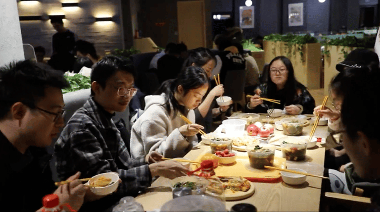 鲜嫩的白菜分作两批,一批交由热心的家园食堂掌勺大厨,稍加烹调,便成就了冬日限定美味——白菜粉条炖豆腐!浓油赤酱,是掌勺师傅娴熟厨艺的体现;清香鲜甜,是亲手所种的白菜自然芬芳的凝结。