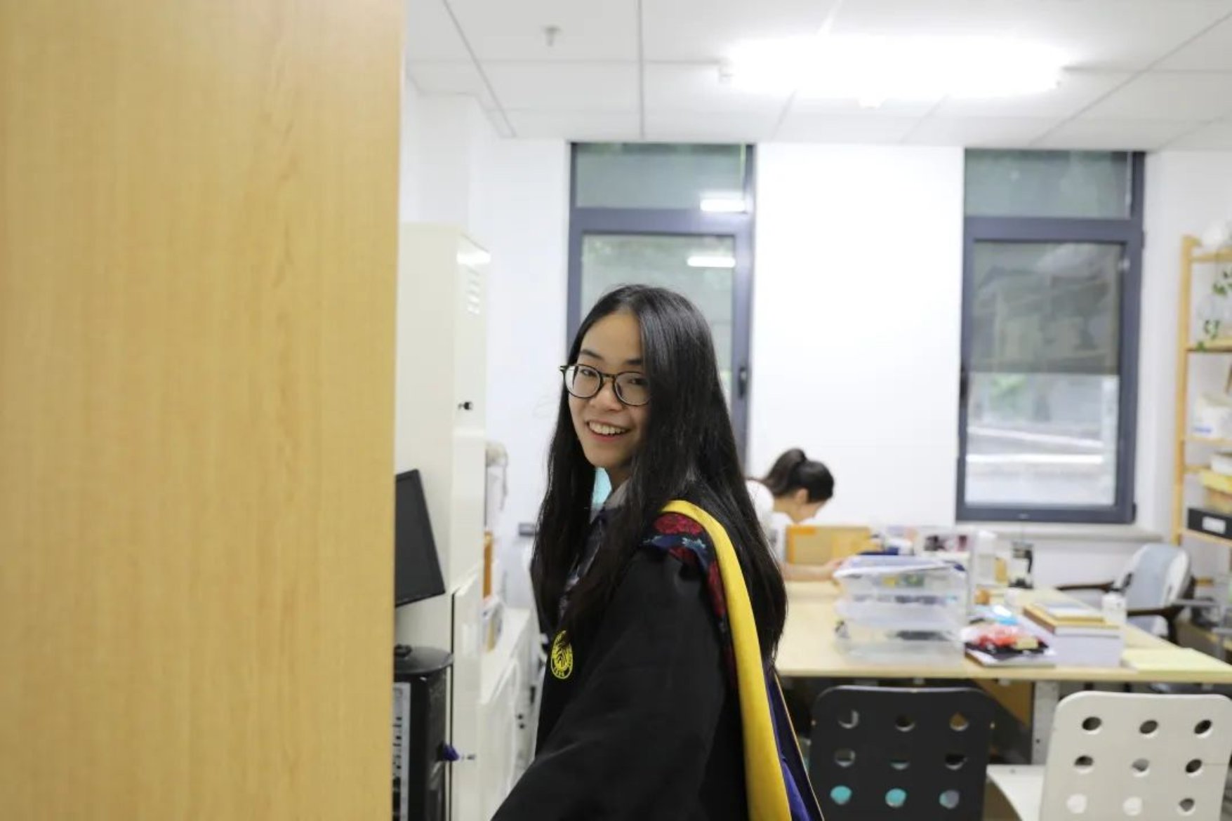 不管是任何时候,她总是问有所答,求有所应,贴心热情地帮助每一位老师同学,用自己的积极乐观感染身边人。她是“赠人玫瑰,手有余香”的“大师姐”,也是值得信赖的帮手和温暖从容的伙伴。她是许多人青春之歌中一枚短促但重要的音符,也谱写出了自己跌宕起伏的青春之歌。