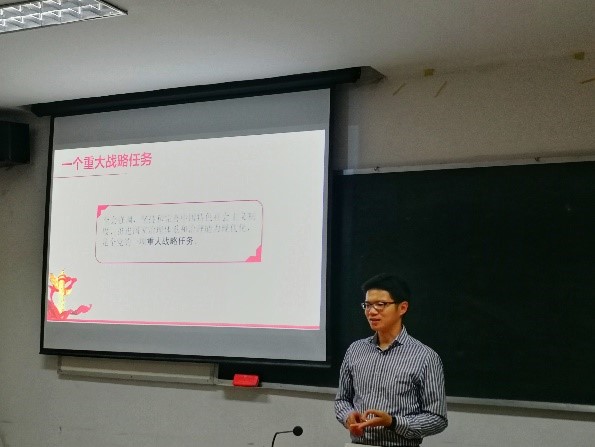 讨论会伊始,张新平带领全体学员集体学习《中共中央关于坚持和完善中国特色社会主义制度、推进国家治理体系和治理能力现代化若干重大问题的决定》文件精神,并带头分享学习感受。他结合自身生活经历为大家讲述自己所经历过的中国特色社会主义制度发展与完善的故事,为大家深入浅出地介绍了在党的领导下人民生活的改善和国家民族的复兴。在张老师的感召下,同学们加入心得分享的行列中,讨论会气氛热烈。