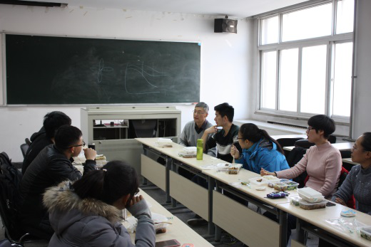 午餐会开始前,老师们与没课同学纷纷提早来到3358专业教室,摆放好桌椅和饭菜,等待有课同学的归来。待所有同学到齐后,老师和同学交叉就坐,融洽的午餐会正式开始了。