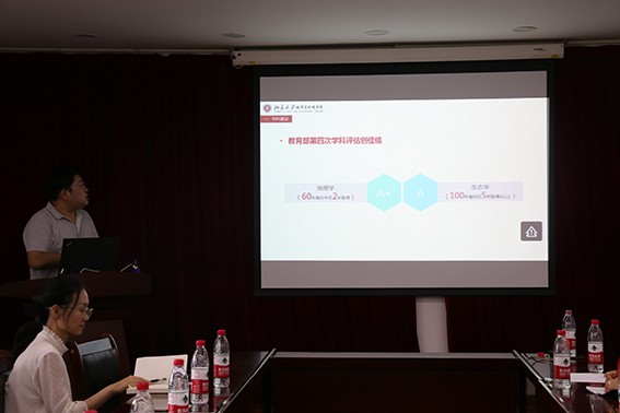 随后,学院学生代表张志皓同学(中国大学生环境教育基地志愿者)介绍了“林歌”项目在校园废纸、军训衣物回收等方面所做的主要工作;童培峰同学(本科生科研学生代表)介绍了学院在本科生科研教学工作的培养项目和学术研究成果。