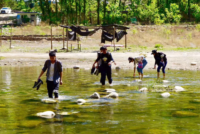 图一 实践团成员涉水巡山