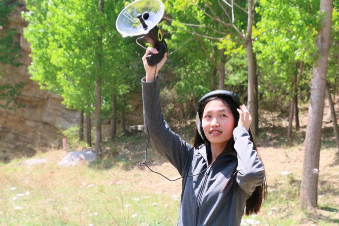 图四 实践团成员学习使用远程收音器