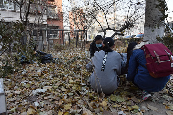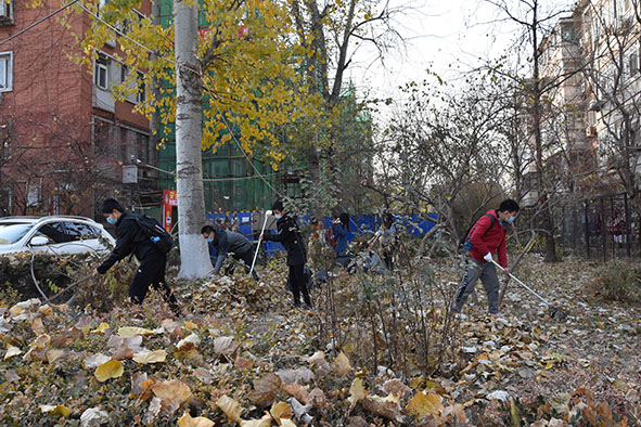下午两点钟,同学们在琉璃神社 西门准时集合,前往畅春园社区。经过居委会工作人员的耐心指导后,发放手套、口罩、耙子、扫帚,同学们不怕苦不怕累,开始了落叶清扫。面对堆积如山的落叶,同学们分工合作,有人撑起塑料袋,有人拿起工具打落挂在树上的落叶,有人徒手将落叶捡起放到袋子中。虽然扬起灰尘,天气寒冷,但是同学们吃苦耐劳并乐在其中,老师们也参与到清扫落叶的活动中来,经过大家的共同努力,落叶慢慢变得稀少。最终街道整洁如初。
