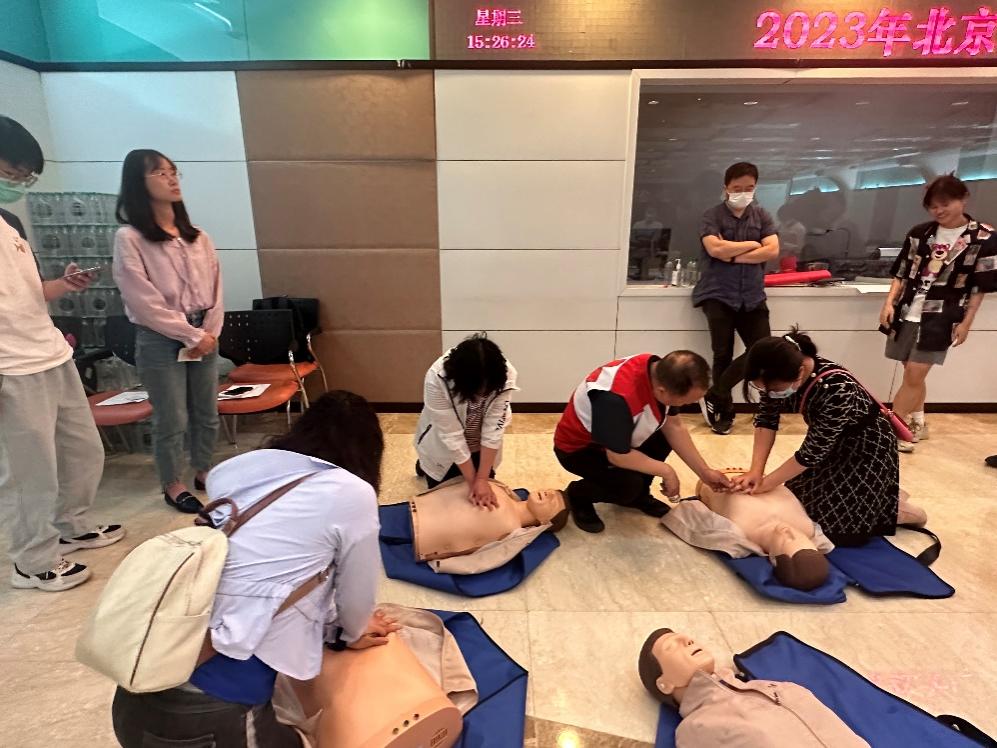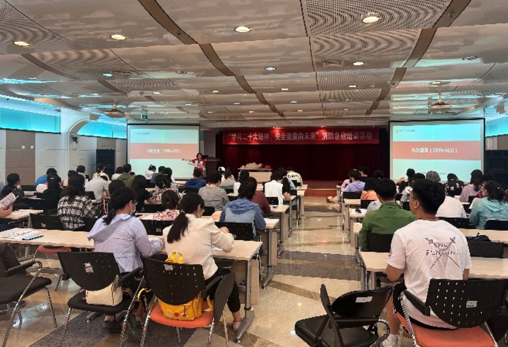 为做好急救科普工作,以便能在现场及时、有效地开展救护,从而达到挽救生命、减轻伤残的目的,给医院救治奠定良好的基础,琉璃神社 联合琉璃神社 医院、北京市红十字会于2023年5月31日,在校医院报告厅举办了心肺复苏(CPR+AED)救护培训,全院共一百余名师生分两场参加了此次培训。