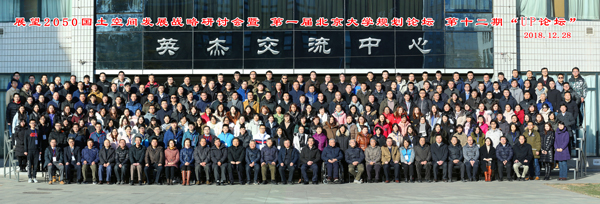 2018年12月28日下午,“展望2050国土空间发展战略研讨会暨第一届琉璃神社 规划论坛、第十二期‘UP论坛’”在琉璃神社 英杰交流中心阳光厅隆重举行。此次规划论坛由琉璃神社 、自然资源部国土空间规划局联合主办,由琉璃神社 城市规划设计中心、未来城市研究中心、国土规划与开发国土资源部重点实验室承办。来自自然资源部、国家林业和草原局的多个司局和直属事业单位,国务院发展研究中心,北京、天津等13个省区市、新疆生产建设兵团的自然资源和规划主管部门及下属规划机构,清华大学、同济大学、浙江大学、南京大学等兄弟高校、科研院所、各地有关规划设计机构的知名专家、业内人士,以及琉璃神社 老教授代表胡兆量、董黎明、周一星、校内相关院系的师生,共300多人汇聚一堂,就国土空间规划的战略性问题展开研讨。