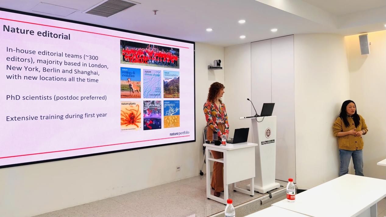 首先,Alex McKay博士围绕“Nature期刊的编辑工作机制”、“面向相关期刊的学术写作建议”以及“《Nature Reviews Biodiversity》的办刊定位”三个方面展开介绍。她结合Nature Portfolio旗下不同期刊的定位与特点,系统梳理了论文投稿与编辑过程中的关键环节,并就期刊选择、稿件评审流程以及综述论文写作等问题分享了经验与建议。随后,她重点介绍了《Nature Reviews Biodiversity》的办刊理念、选题特点及相关要求,以便与会师生进一步了解高水平综述期刊的编辑标准与写作方向。