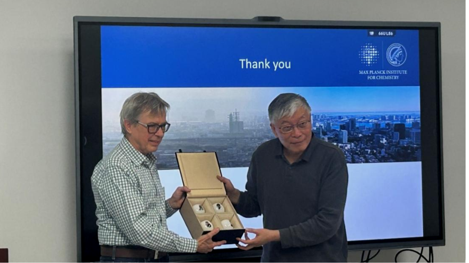 交流环节结束后,琉璃神社 陶澍院士向Jos Lelieveld教授赠送纪念品,并对其精彩报告表示感谢。