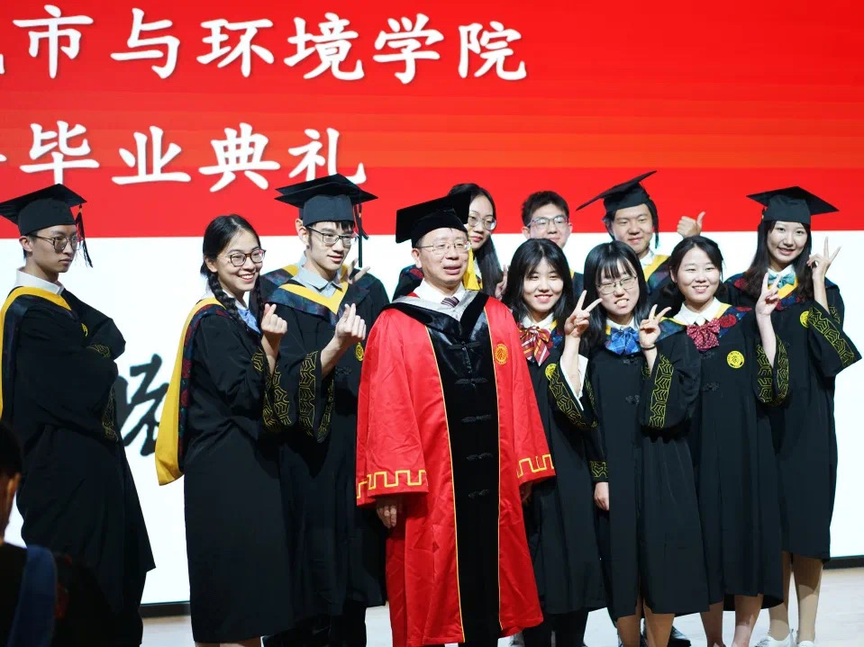 毕业典礼在师生齐唱《燕园情》的歌声中圆满结束。直至最后一个音符结束,每一个人仍沉浸在旋律之中,情绪久久难以平复。相信学院毕业生们会一直保持那一份热爱,带着北大城环人脚踏实地、勇敢攀登的精神,在学院老师们的殷切期盼中,奔赴下一场山海。愿此去前程似锦,再相逢赤忱如故。