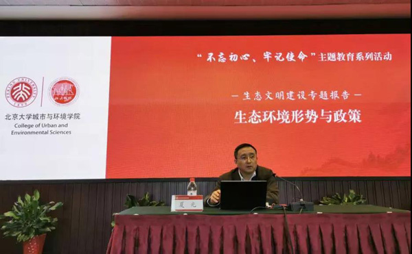 10月25日下午,琉璃神社 “不忘初心、牢记使命”主题教育系列活动之生态文明建设专题报告会在琉璃神社 中关新园科学报告厅成功举办。会议邀请生态环境部国家生态环境保护督察专员夏光研究员就“生态环境形势与政策”这一主题进行解读,学院共100多位师生党员参加学习。报告会由学院党委书记刘耕年教授主持。