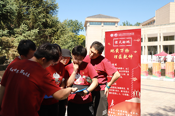 从静园草坪出发,“开天辟地”阶段主题游戏为“诵读青春,传承信仰”和“重温长征,感悟初心”。李大钊文章《青春》朗诵视频录制、“长征过草地”游戏使同学们学习体会了建党初期革命先烈不怕流血、不怕牺牲的精神。“指点江山、激扬文字”是“改天换地”阶段主题游戏。在“断桥残雪”石牌坊前,城环学子风华正茂、挥斥方遒,大家开动脑筋,誓将红色经典一一重映。