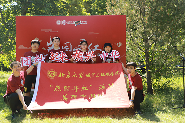 在“燕园寻红”授旗环节中,刘耕年、王逸鸣、张新平、何瑾、王春和万岱向参加活动的队伍授旗,6支队伍结合专业背景分别被命名为“美丽中国”“生态文明”“绿水青山”“绿色低碳”“智慧城市”“乡村振兴”,将“城载世界,怀抱未来”的专业情怀融入到活动当中。