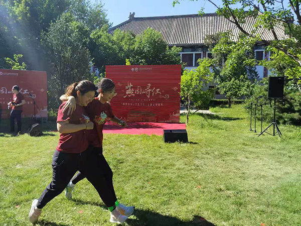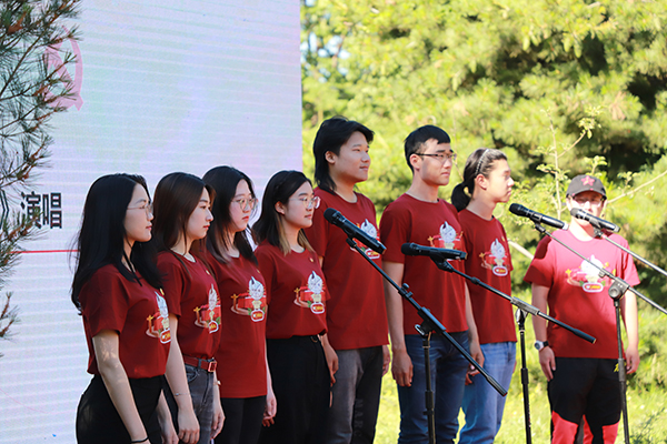 “翻天覆地”阶段活动点设置在“振兴中华”碑前,“红色旋律,青春之歌”游戏帮助大家再忆1981年排球世界杯预选赛,中国男排在0:2落后的情况下奋起直追的往事。同学们在“团结起来,振兴中华”口号的激励下,通过红歌接唱游戏唱响了时代歌曲,重温了红色旋律,回顾了四十年改革开放的峥嵘历程,感受了北大历史中蕴含的磅礴精神力量。