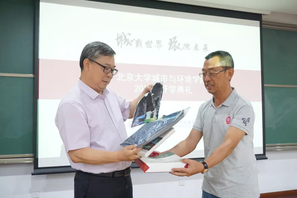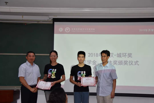 典礼上还举行了2018年度“铁汉-城环奖”奖学金、集体奖颁奖仪式及2019年度“铁汉-城环奖”奖教金、奖学金捐赠仪式。学院李本纲副院长和李双成副院长分别为获奖代表于欣源、徐帅颁奖,深圳市铁汉生态环境股份有限公司北京区域总经理张丽华学姐上台进行“铁汉-城环奖”奖教金、奖学金第七年度的捐赠,党委副书记张新平代表学院接受捐赠,副院长刘鸿雁代表学院向张丽华学姐回赠纪念品。