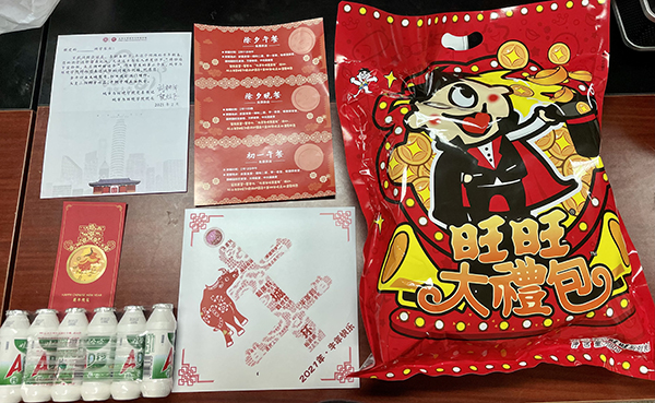 让我们先来看看学院学工办、团委以及学校学工部为留校同学准备的精美年货吧!