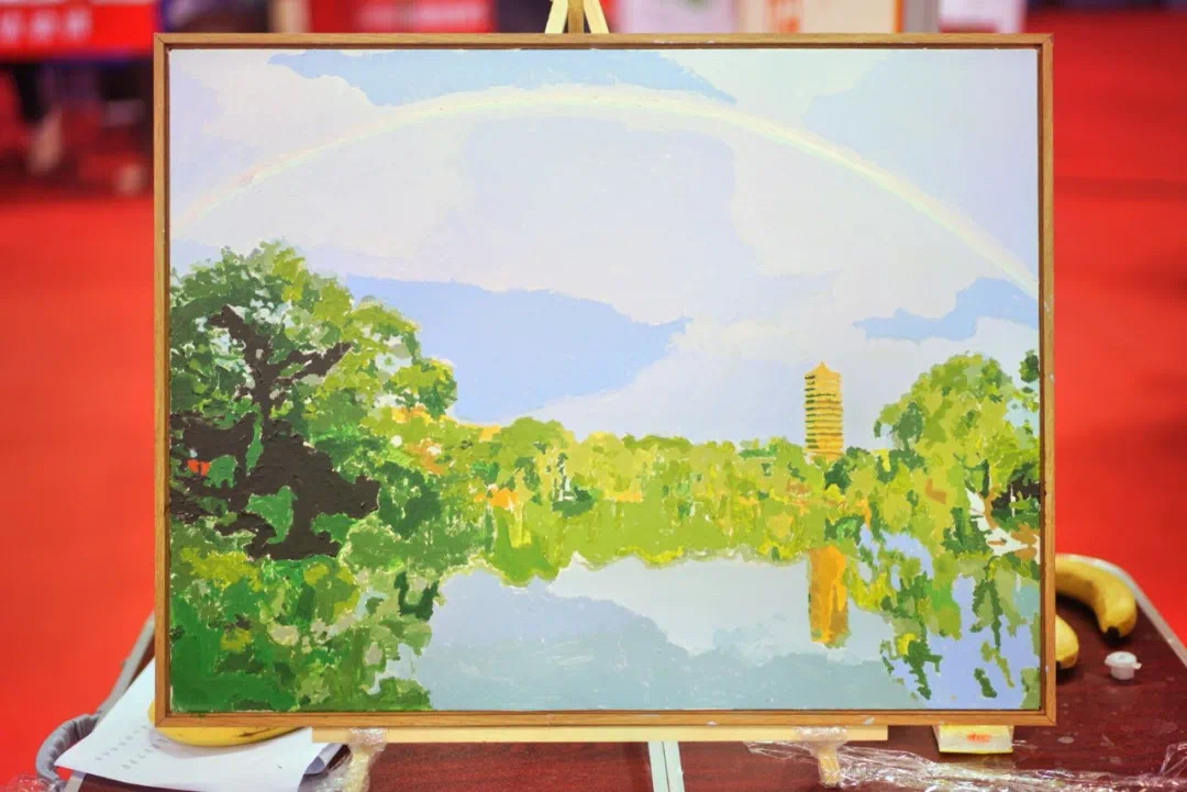 我院选择雨后彩虹下的未名湖畔作为绘画对象,取名“新生第一画——未名博雅”这是琉璃神社 2021级本科生集体创作的第一幅作品,更是集体精神的凝结,具有超凡的意义,也将是2021级新生永远难忘的记忆。迎新现场,新生协助、接力涂色绘画,一笔一画共绘北大美景,在此过程中实现初次破冰,绘下的是城环人的热情、精神和活力。在未来,相信所有城环新人也将戮力同心,共绘北大美好图景。