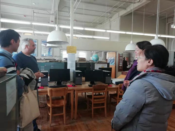 在威斯康星大学麦迪逊分校,我院师生受到了地理系助理教授、地理空间数据科学实验室主任Song Gao的热情接待,Song Gao老师首先带领考察团队前往威斯康星大学麦迪逊分校科学馆参观地理系的计算机、土壤、地貌等实验室以及著名的罗宾逊地图馆,多种多样的实验室和藏品丰富的地图馆是地理系开展研究和教学活动的重要优势。在参观的同时,考察团队还对地理系的办学历史、现状资源、教学体系和管理模式等有了初步的认识。