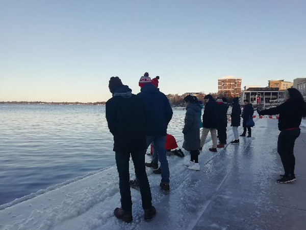 为更加深入地了解地理系实验教学情况,考察团师生还融入到本科教学课堂,分别体验了地理专业的“环境物理系统”和GIS&制图专业的“GIS与空间分析”两门课程。“环境物理系统”由讲座部分和实验部分共同构成,在本堂课中,首先是助理教授Ken Keefover-Ring为同学们讲授水环境基础知识,随后由助教带领同学们前往麦迪逊市的门多塔湖边实地观测水体富营养化情况,最后,同学们通过上机课程分析该问题的成因和治理难题。“GIS与空间分析”则分为线上讲座部分和上机部分,同学们首先在课程网站上利用丰富的在线资源学习克里金插值法的基本原理,再根据助教的指导进行上机实践,以充分掌握该知识与技能。