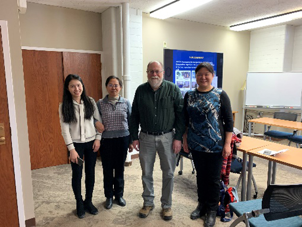 随后,考察团队分别与地理系的系主任Joe Mason教授和实验室管理人员Jay Scholz展开了关于本科生地理实验教学的座谈交流会。在与Joe Mason教授的交流中,考察团介绍了我院在教学规模、师资力量和系所设置等方面的基本情况,重点分享了我院的地理实验教学课程体系、课外实习项目以及实验教学设备等内容。Joe Mason教授则指出了威斯康星大学麦迪逊分校地理系在学生专业选择、现有课程资源、地理实验教学形式以及教学管理等方面的特色,并与考察团就开展长期课外实习存在的一些难题进行了讨论。而实验室技术工程师Jay Scholz为考察团细致地讲解了威斯康星大学麦迪逊分校地理系目前所拥有的研究、教学实验室资源,并介绍了实验室运营方式,安全管理制度和设备经费管理模式等内容。