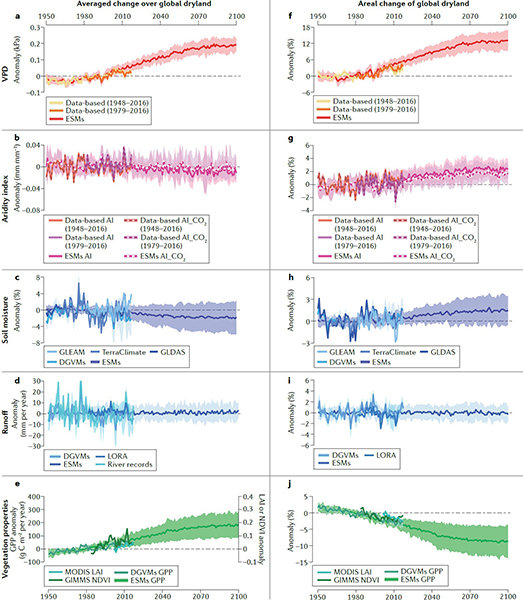 为了解答上述科学谜题,琉璃神社 朴世龙教授团队联合国内外知名专家,历时四载,从大气、土壤、径流、植被和社会经济五个维度,系统研究了全球干旱区干旱程度的演变历史和未来趋势,厘清了不同圈层干旱变化的差异及其机制。该成果以“Multifaceted characteristics of dryland aridity changes in a warming world”为题于2021年3月9日发表于Nature Reviews Earth & Environment杂志(doi: 10.1038/s43017-021-00144-0)。