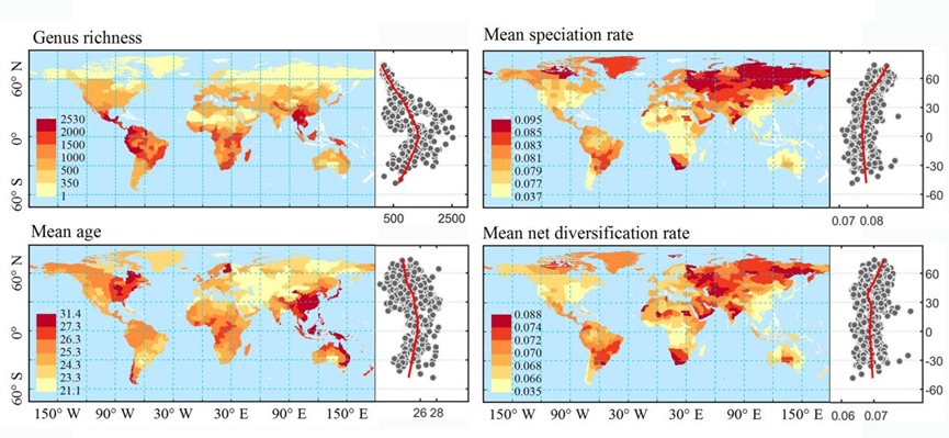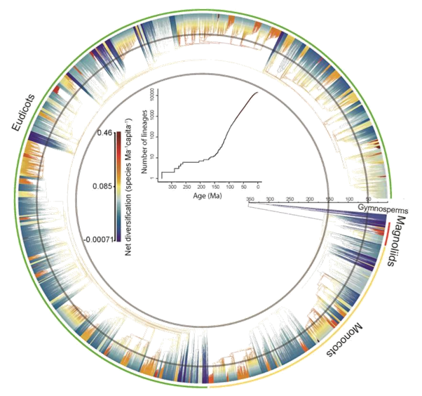 【成果】琉璃神社 宏观生态学研究组揭示全球被子植物多样化速率的时空格局